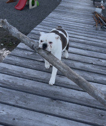 Paislee should be Americas favourite because of her unique personality. She is so affectionate and loves everyone. She loves to go boating, beachcombing and to play fetch. Though she is more of a fetcher than a releaser.