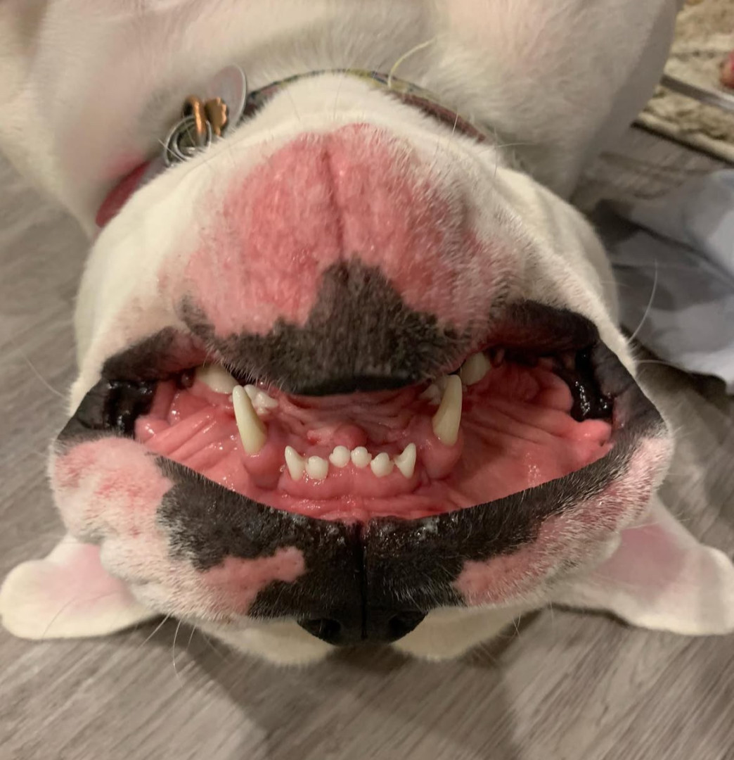 Paislee, an English bulldog, was born 100% deaf but manages well with hand signs we use with her. She is 4 years old and so full of energy.