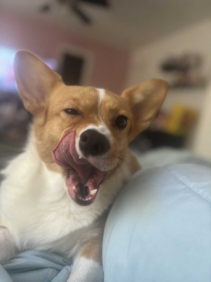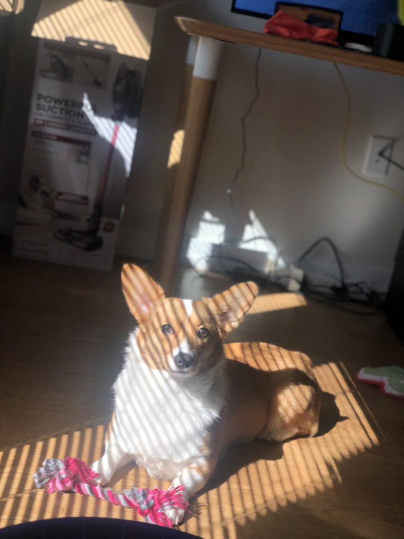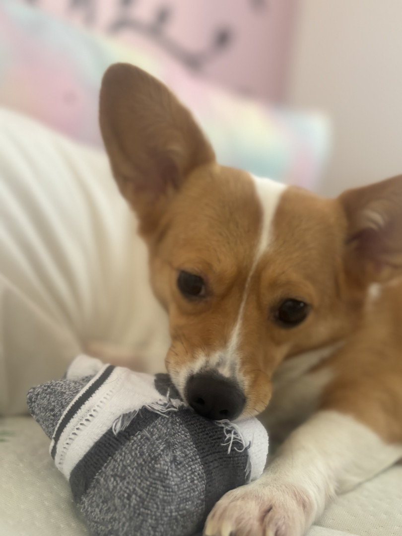 Paisley is a 3 year old Pembroke welsh corgi! She is really outgoing, loves to talk back and absolutely loves everybody! She knows all kinds of tricks like, sit, paw, spin, roll over, stand pretty, wait and tap!!! She is absolutely amazing and I think she should be America’s favorite pet!!