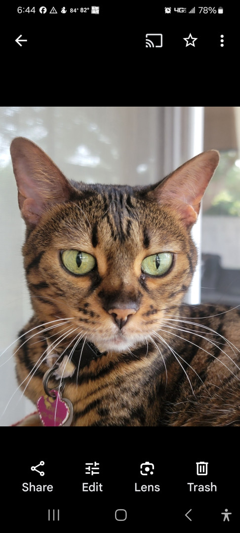 Rosie is my soul cat. She is a gorgeous F 3 Bengal that that I rescued many years ago from two college students. Vocal, tells stories!