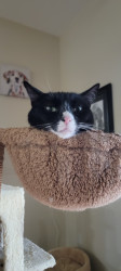 Rosie has quite a few unique qualities. She has the most beautiful emerald green eyes. She has the longest tongue and will lick my arm for hours to show how much she loves me. She will curl up between my legs and purr soft until I drift off to sleep .
