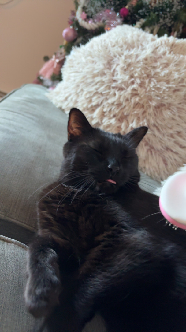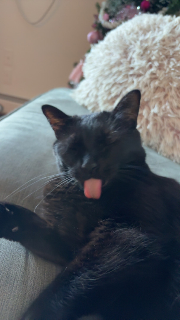 She is the most vocal cat and will meow back when you speak to her, she loves to meow when she wants something like food or just attention! Loves to stick her tongue out when she’s happy