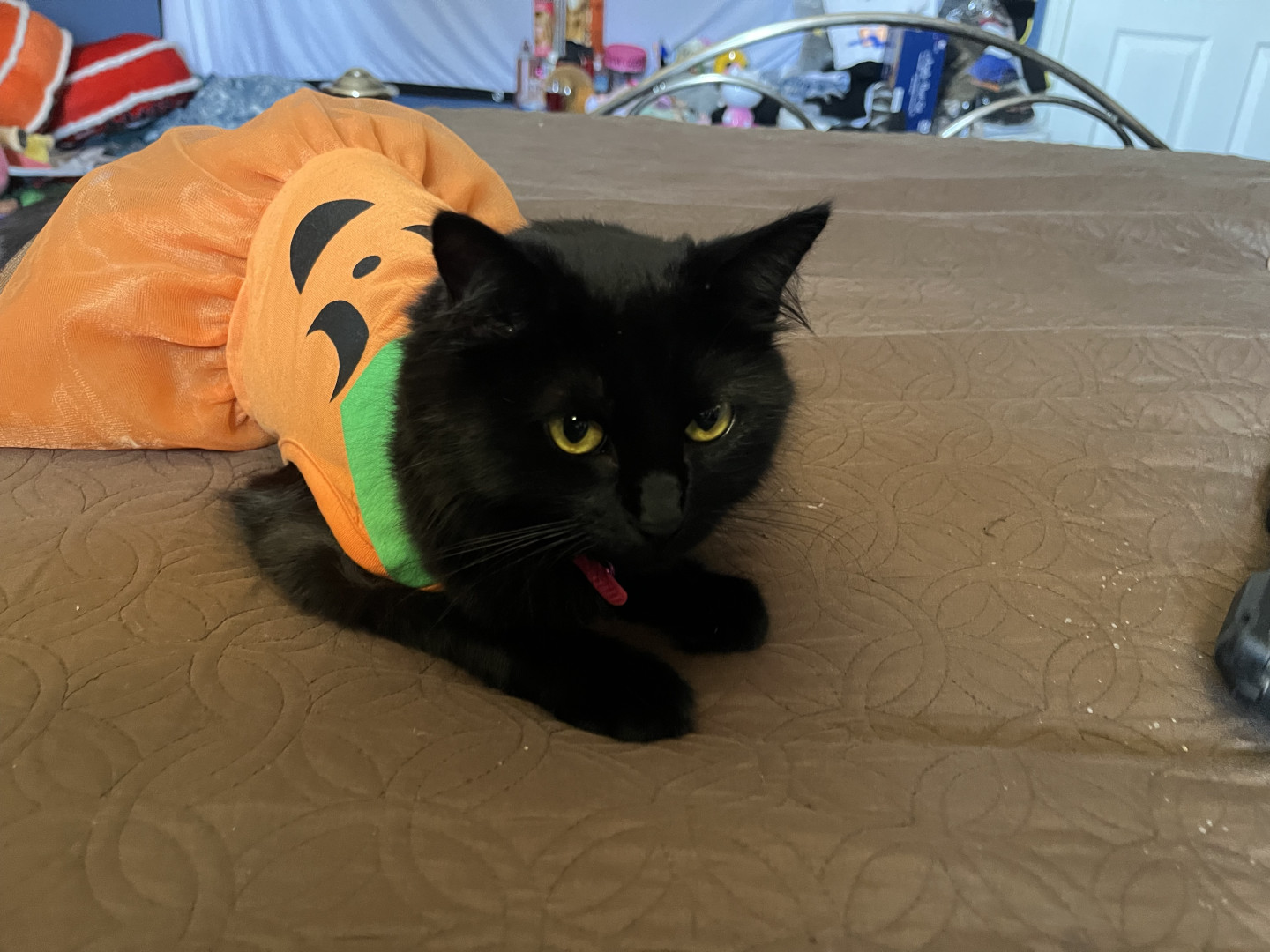 Her name is panther she is a very friendly cat she loves to play she likes to were her little cat clothes