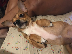 Because he’s papi Chulo a 6lb little puppy dog that’s has the heart of a lion