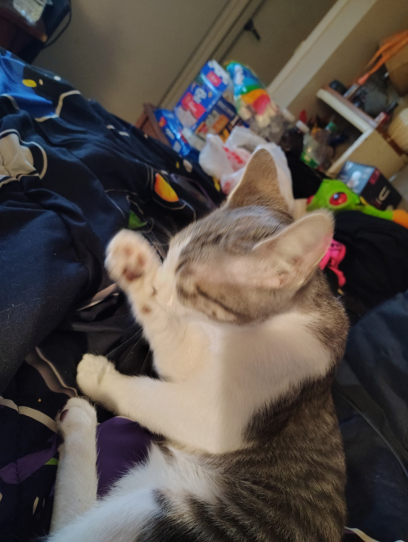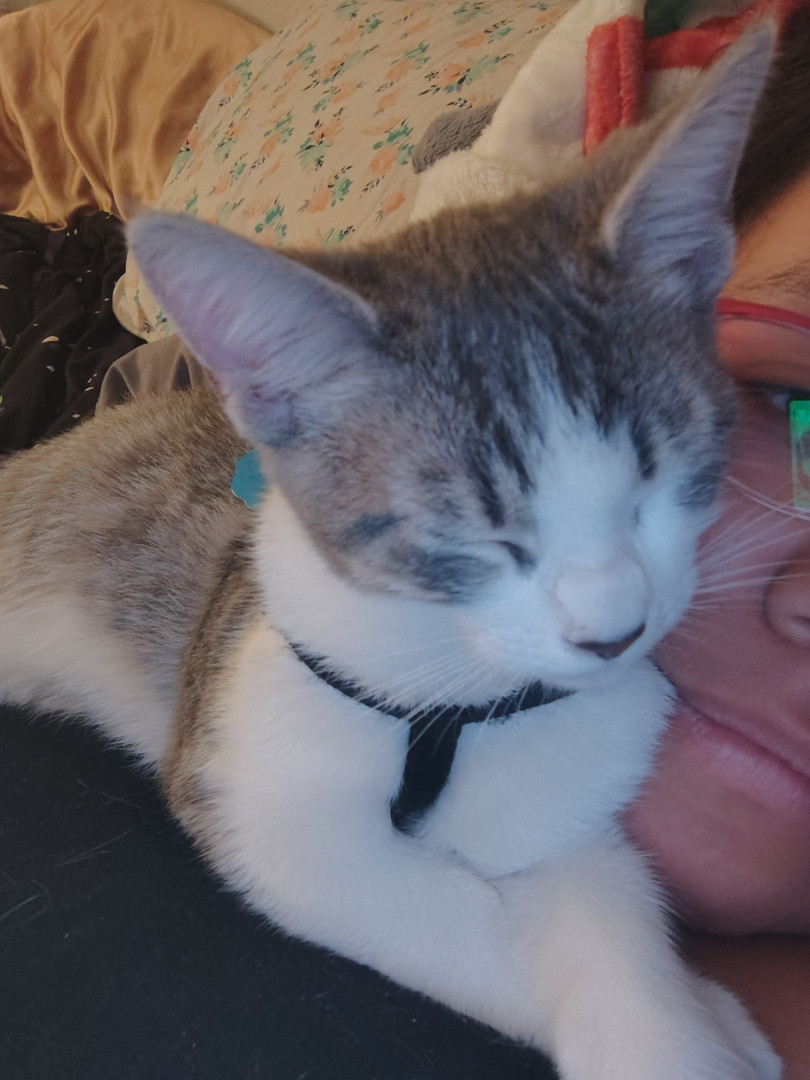 He's a loveable kitten who always wants cuddles and attention loves to play with feathers and small toys