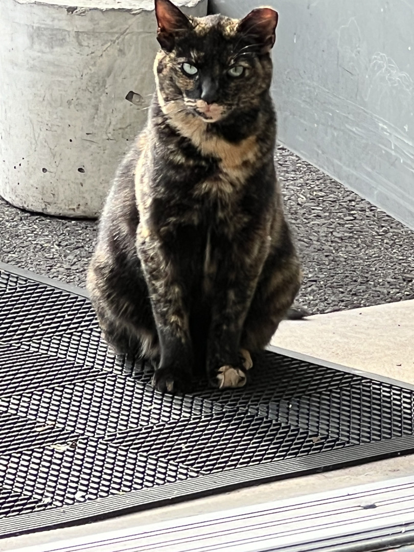 Patches is a loving cat and likes to be petted. She would eat nonstop if you could.