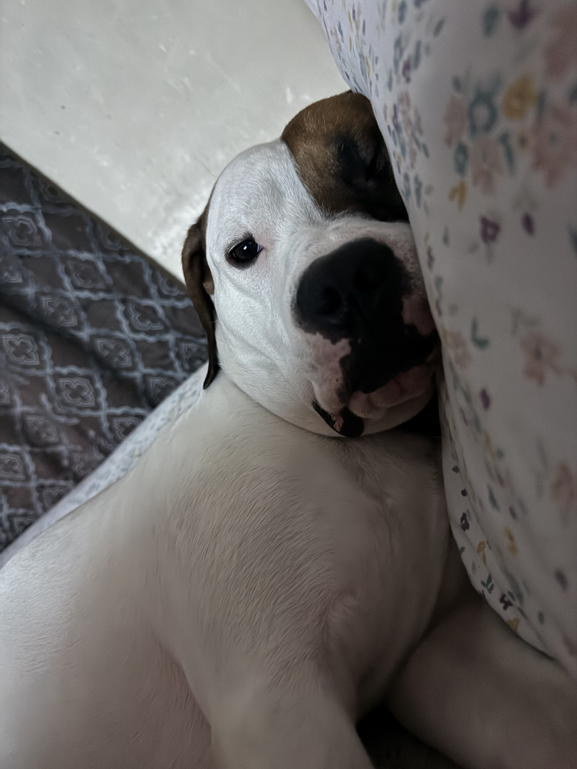 He should be americas favorite because he is an adorable pitbull mix who has overcome a lot in the short amount of time he has been alive and his breed is always getting a bad rap and he is the most sweetest boy ever.