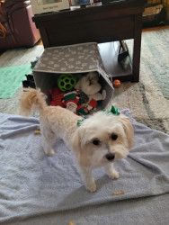 My maltipoo is 7 years old. I named her after our Kansas City Chiefs quarterback Patrick Mahomes.