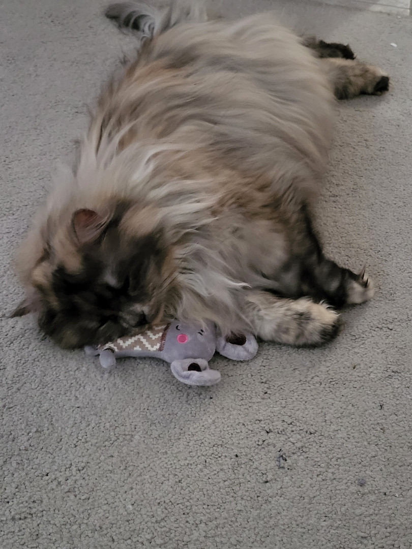 Cinnamon loves to sleep. She likes watching baseball on t.v her favorite team is the cubs