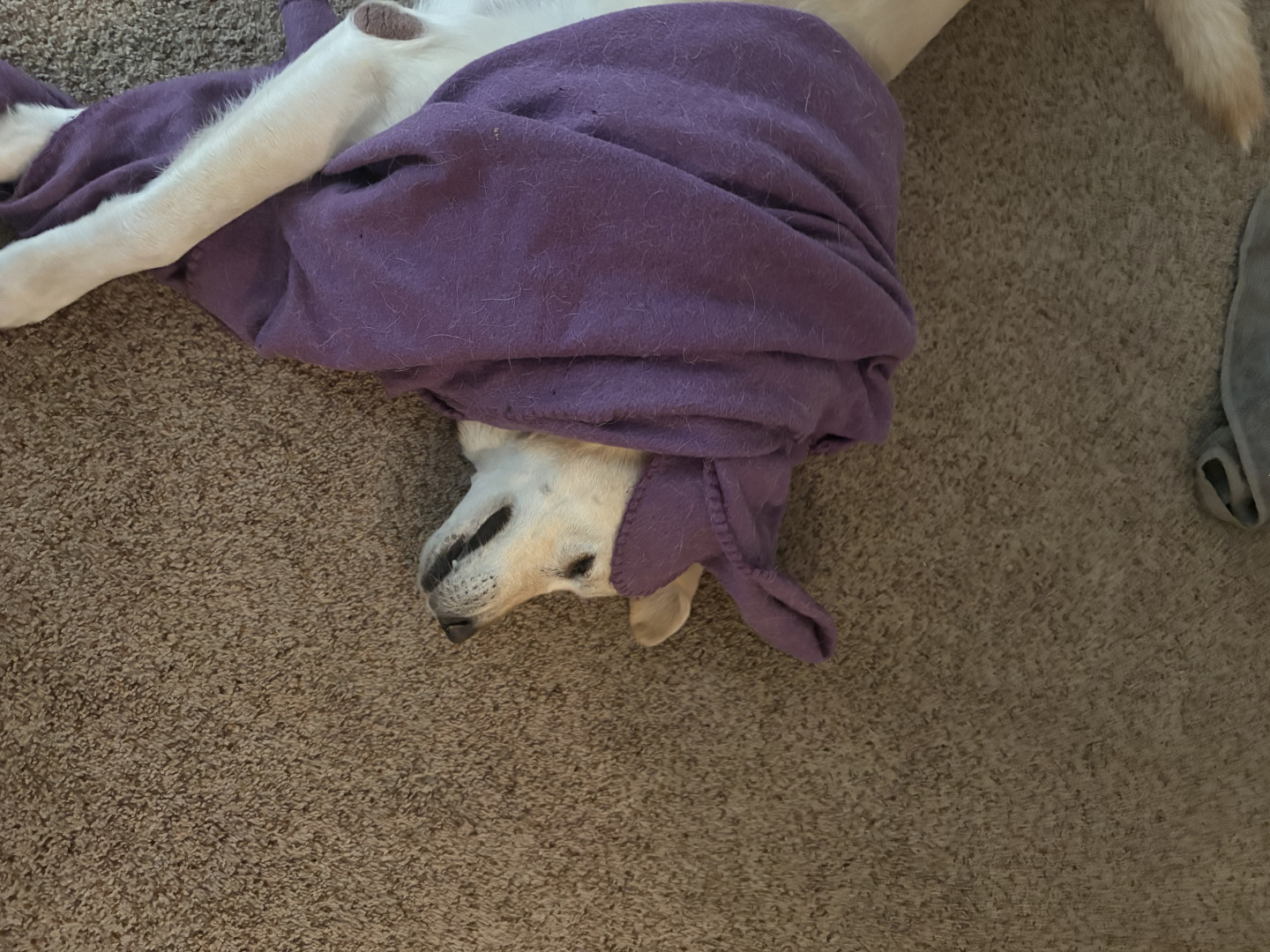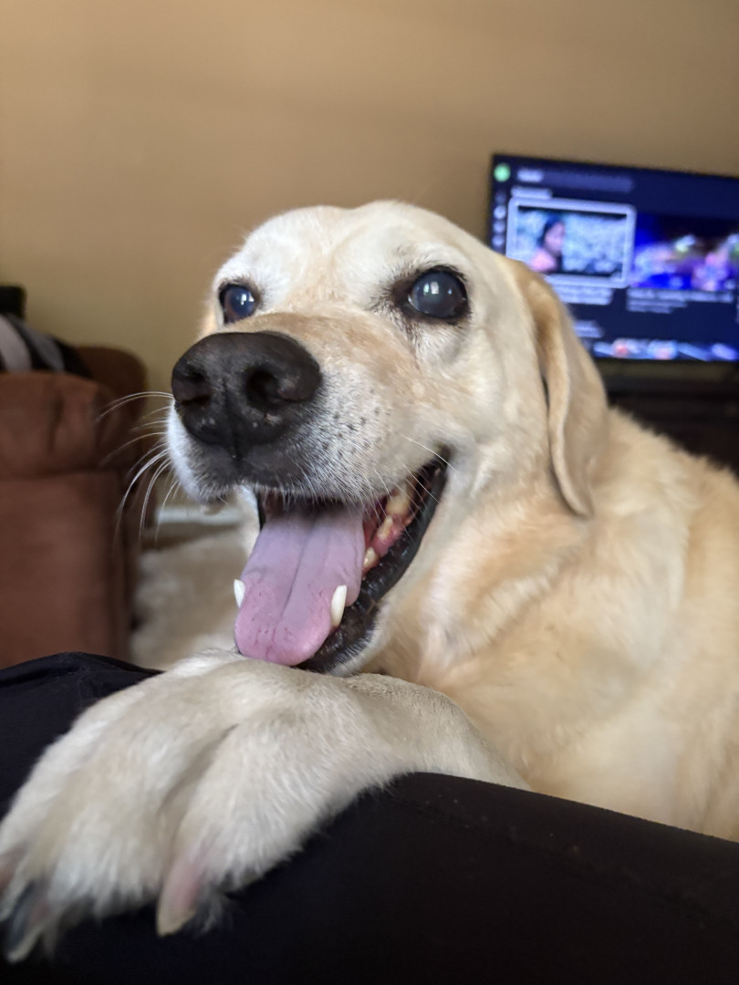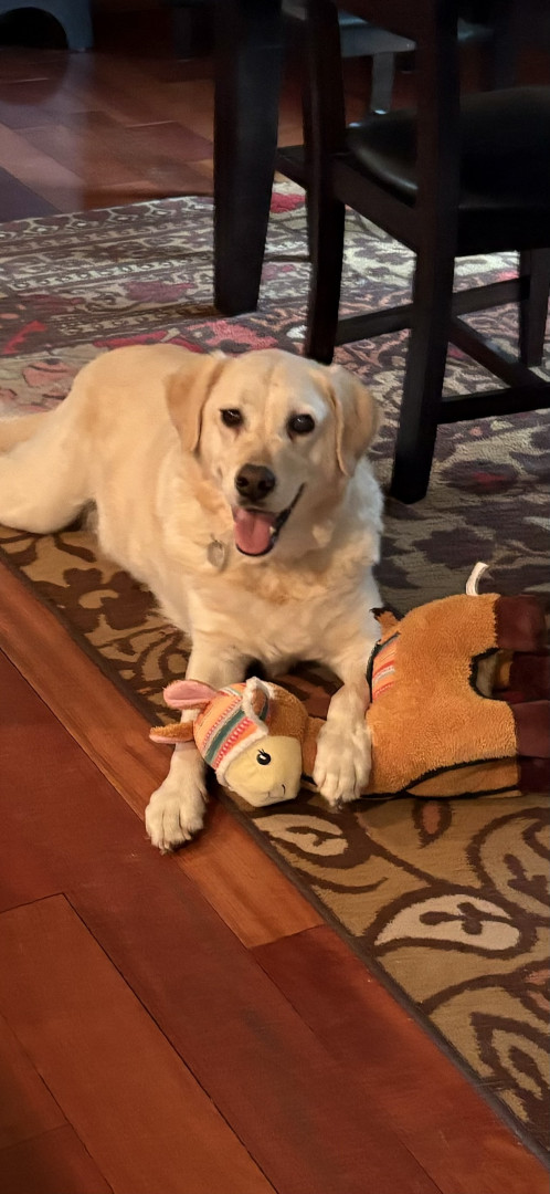 He’s the sweetest dog. He was rescued at 6 months old and is almost 8. He is now blind and had acclimated to life very well!