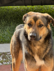 Pe-ka was a stray dog running in the neighborhood. Our old shepherd dog Sheiky sat in the driveway beside a bowl of food. Pe-ka finally cam