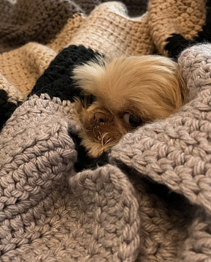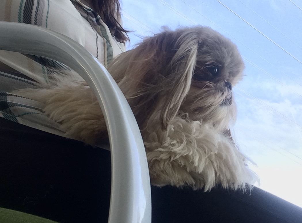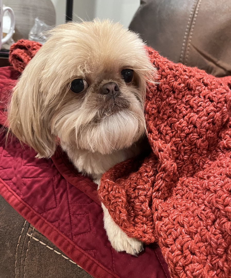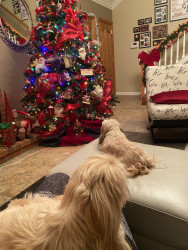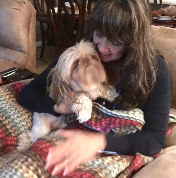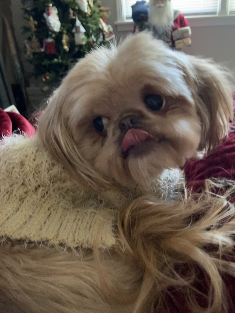 She is truly a lanky long legged Blonde that dances tall up on her hind legs - with her fore legs high in the air waving and crossing in front of her face in excitement when her mom comes home! And, she has the biggest eyes & most expressive face! Oh - and did I share - Peaches loves coffee! Mommy doesn’t give her coffee but she can have a lick of my finger. Especially if the coffee has eggnog in it! 😋