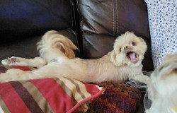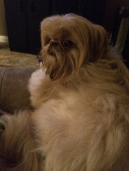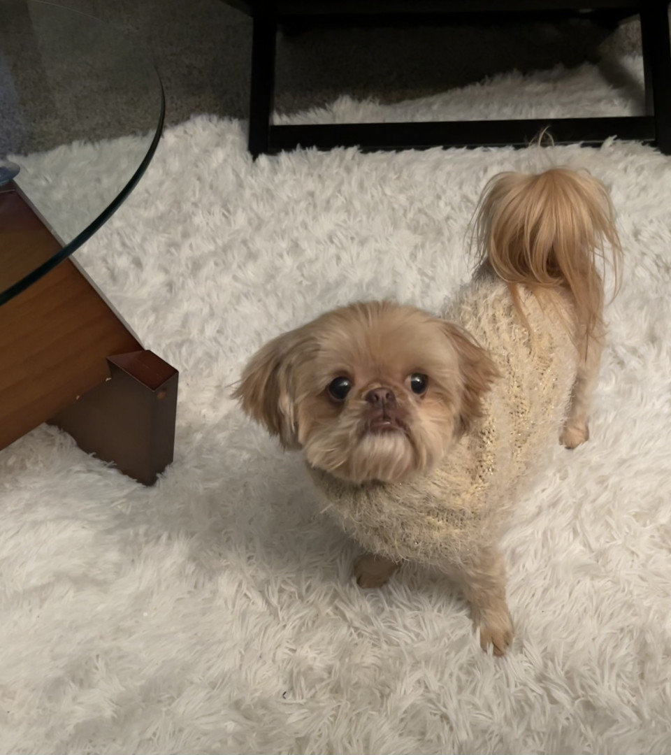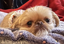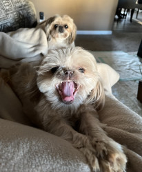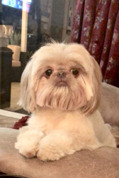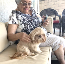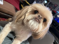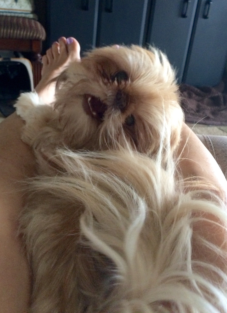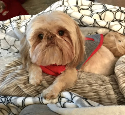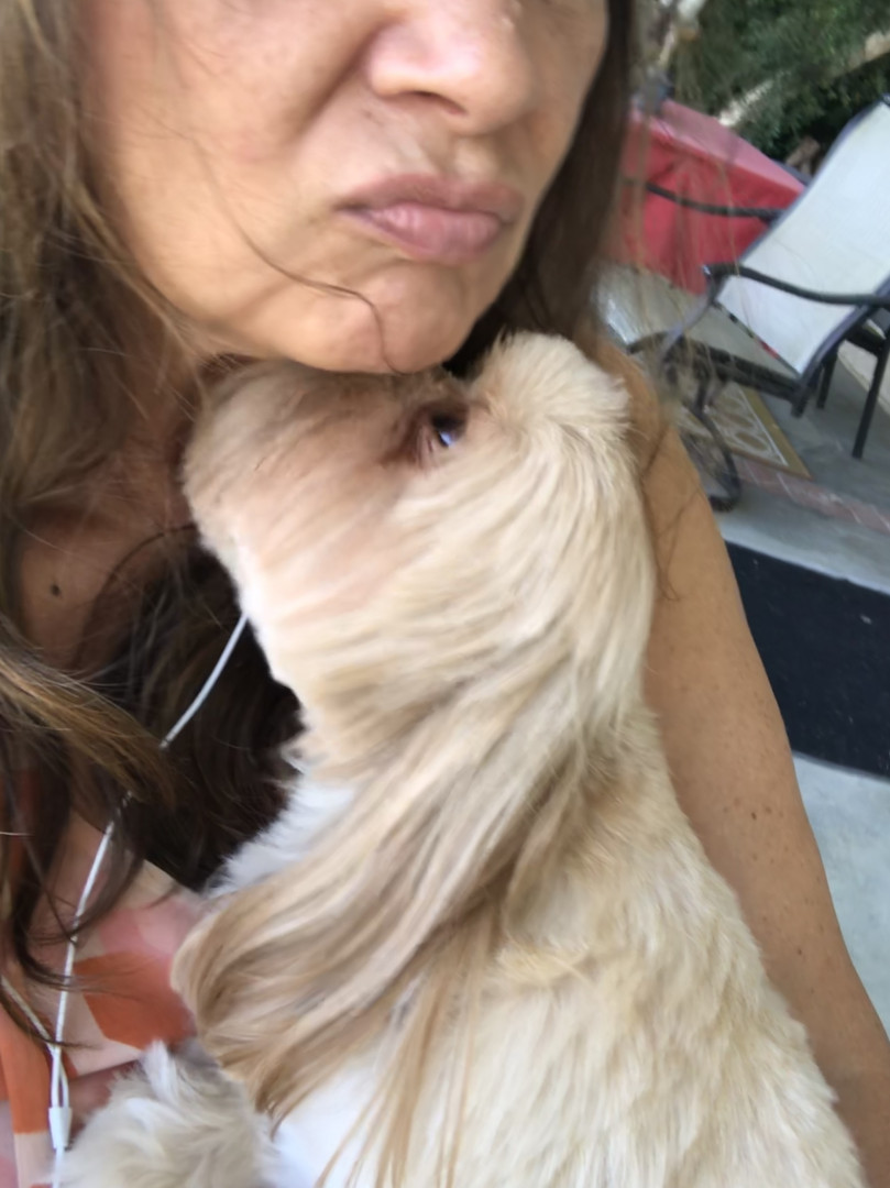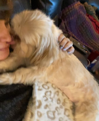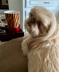 Peaches is one of the sweetest, happiest girls who is loved by all who meet her. She’s well behaved at the groomer and the vet. Never a peep. She’s a big hugger, she’s a lover and - and she’s definitely a psychic or mind reader. When Peaches is ready to eat, she waits for the kitchen to be empty, with no risk of interruption. She looks back at us multiple times, as if to ask “are you guys done in here?” till she feels it’s safe to go enjoy her meal in peace.