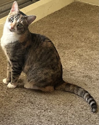 Peaches is sweet but also highly energetic. She loves to play with us but also likes to rub and snuggle. She enjoys the windowsill also.
