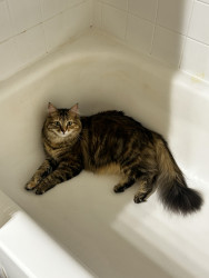Peaches is the most snuggly and fluffy companion anyone could ever have, truly the sweetest cat you’d ever meet with so so much personality.