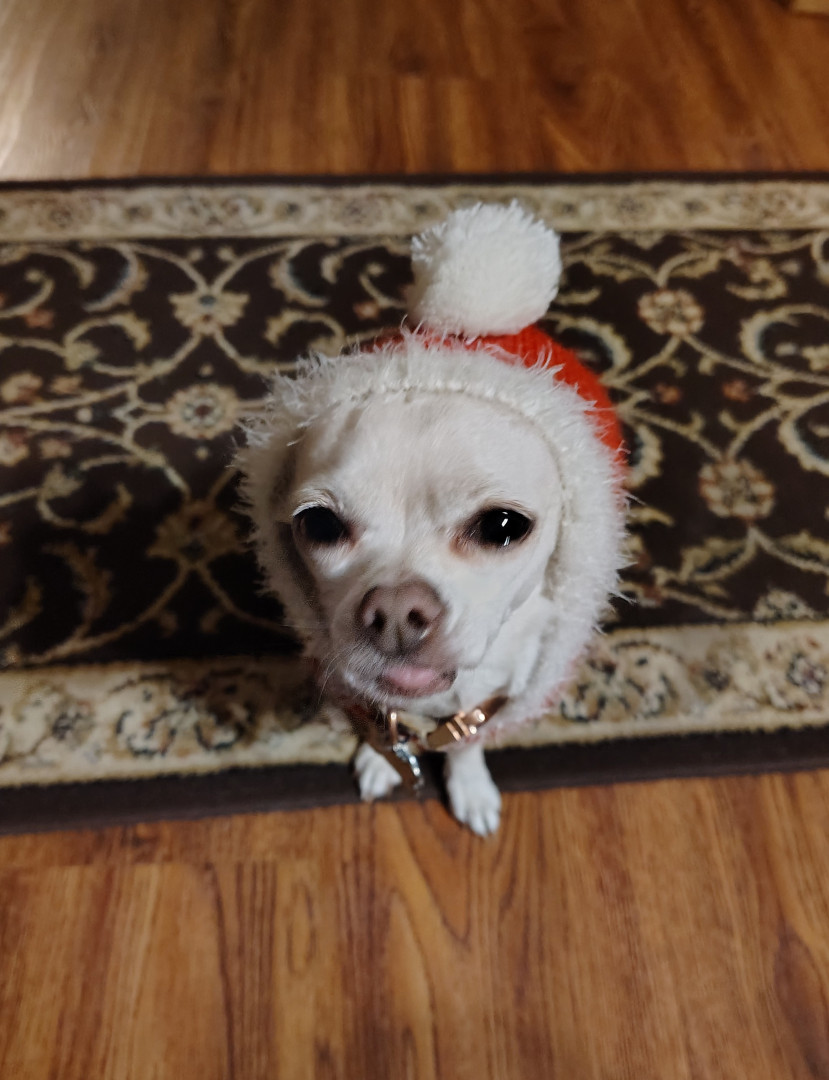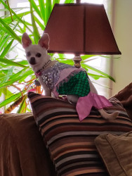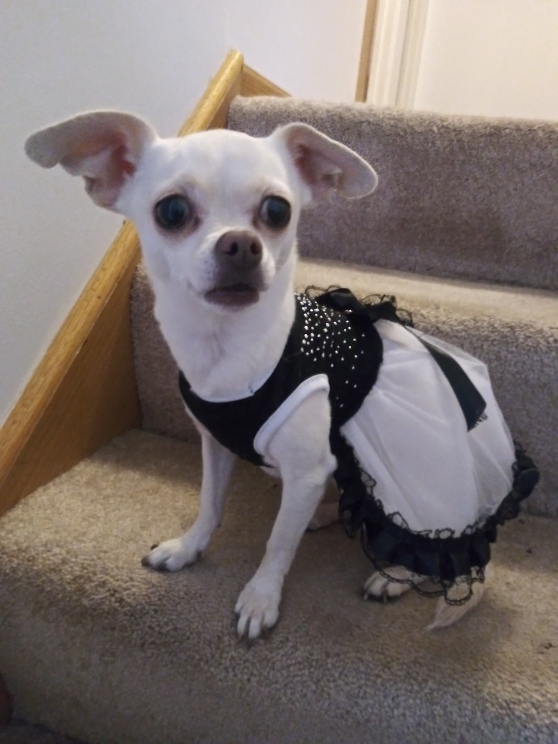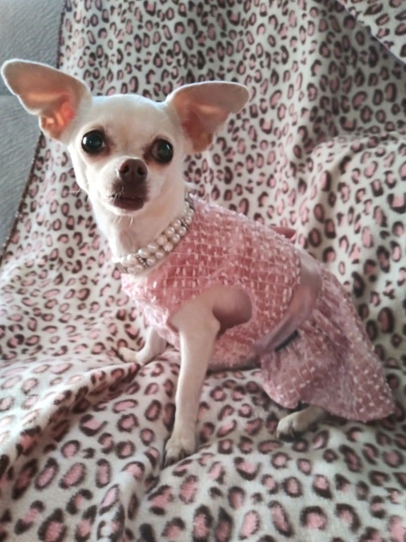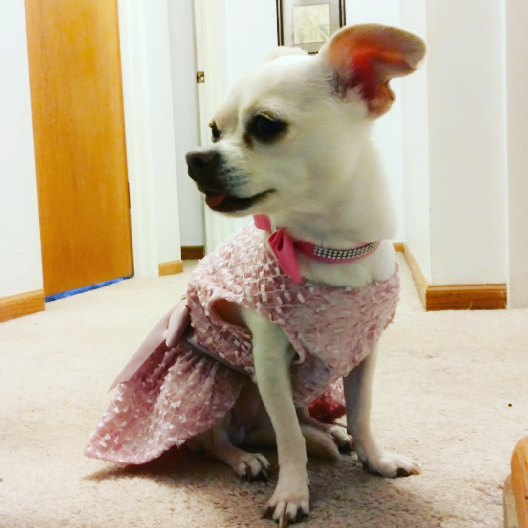 Peanut's most unique quality is her love for clothes. If she sees me going into one of her clothes chests she comes running to see what I am going to pick out for her to wear.