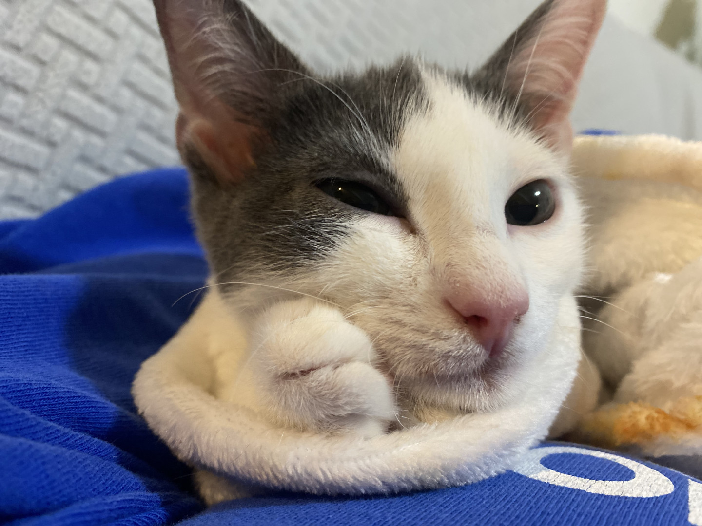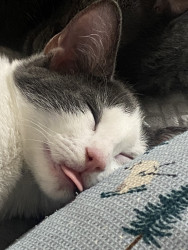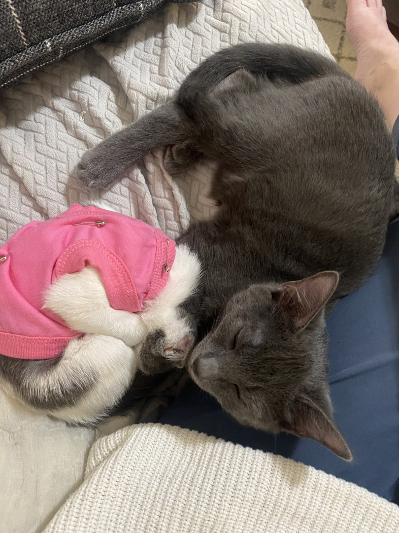 Against all odds, Peanut perseveres. She couldn’t do it without her brother Thai (the youngest of their litter) that was adopted from a rescue along with Miss P. Thai and Peanut together are providing their adoptive mama a much needed help in healing her heart after the death of departed step-sister kitty LuLu which adoptive mama said goodbye to in June after 22 years of love, adventure, and amazing companionship. Peanut could heal any heart. Grandma even seems to like her which is unheard of.