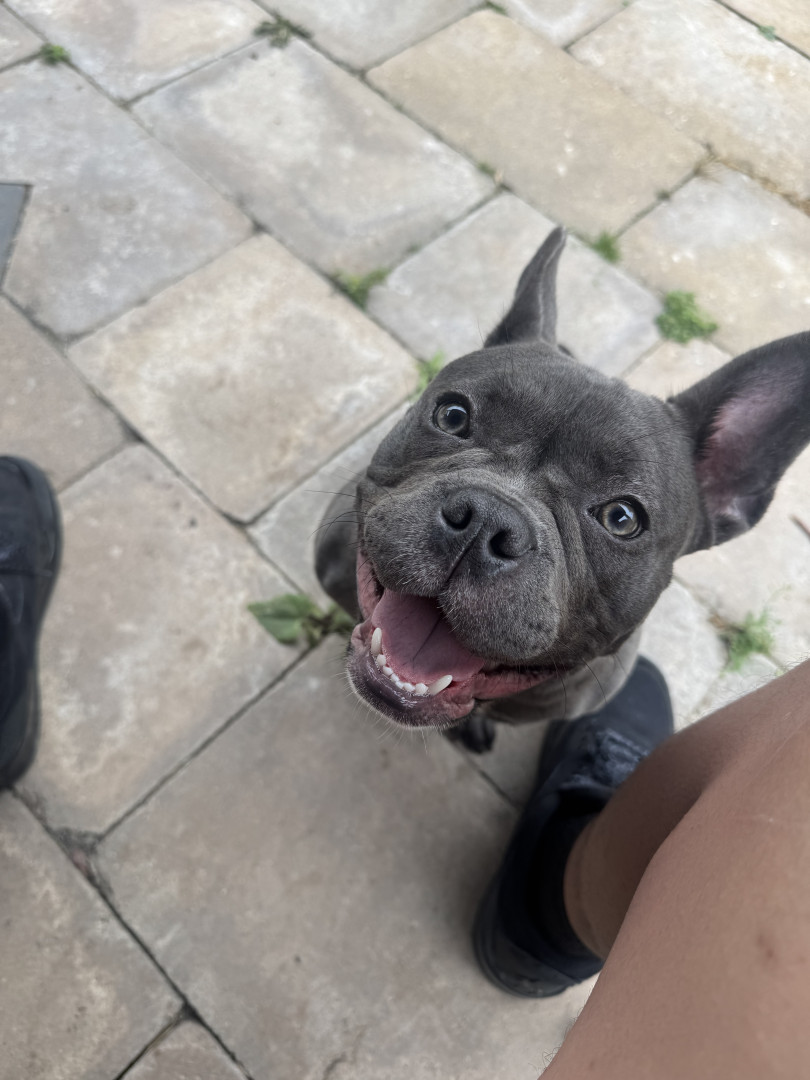 Super cuddly energetic,Frenchie/Micro pitbull Mix, comes with the best of both worlds, built like a Bodybuilder but loving like a teddy bear