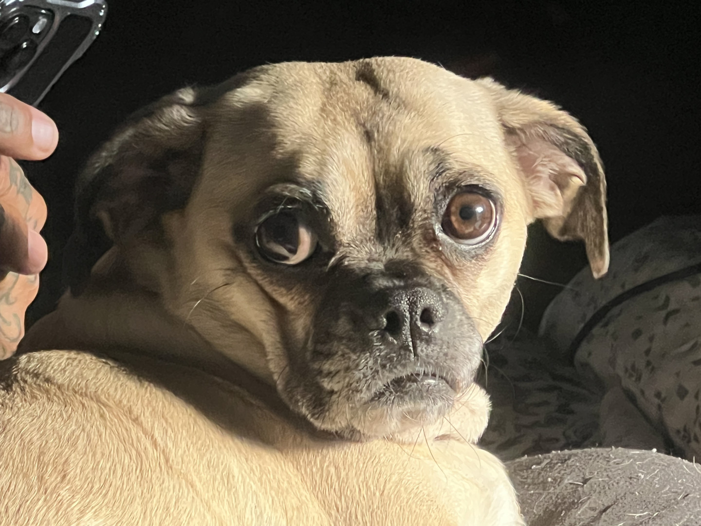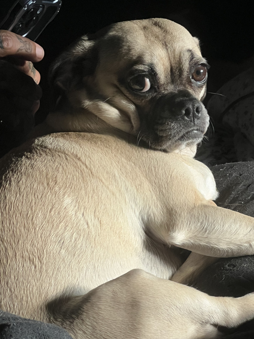 I’m quiet and my super power is I have a huge bark for a small doggie. My mommy says I have beautiful eyes. I love belly rubs and I love kisses. I also tear shit up when mommy and daddy go places and not take me. They rescued me so we are still discovering me. But I’ll let you know…
