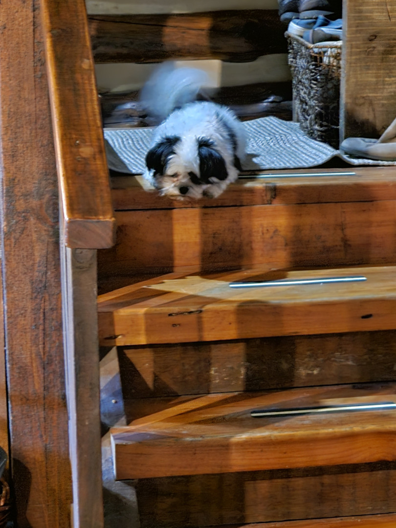 She has a few unique ways about her. The cutest is she will back stretch her rear legs, like she's doing yoga. Another is she tries to carry on a conversation with you. The third is she loves all people and especially children. On several occasions she has nearly dragged me trying to get to a crying child so she can soothe it. She is already a superstar to the folks that know her.