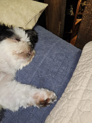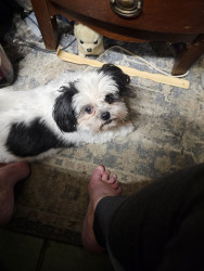 PeaPie is a black and white shihtzu mix. She is very sweet and loves children! She loves to be petted and she loves to talk. My best friend!