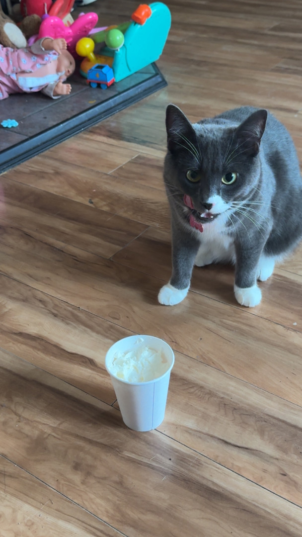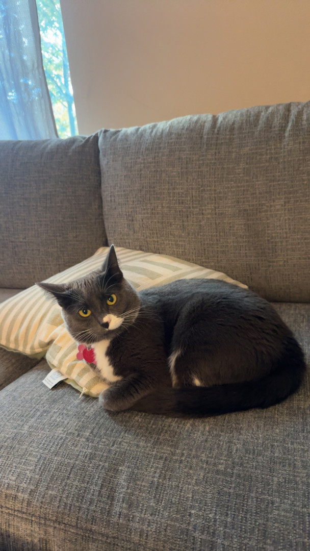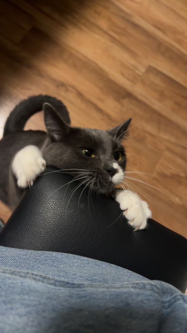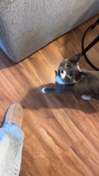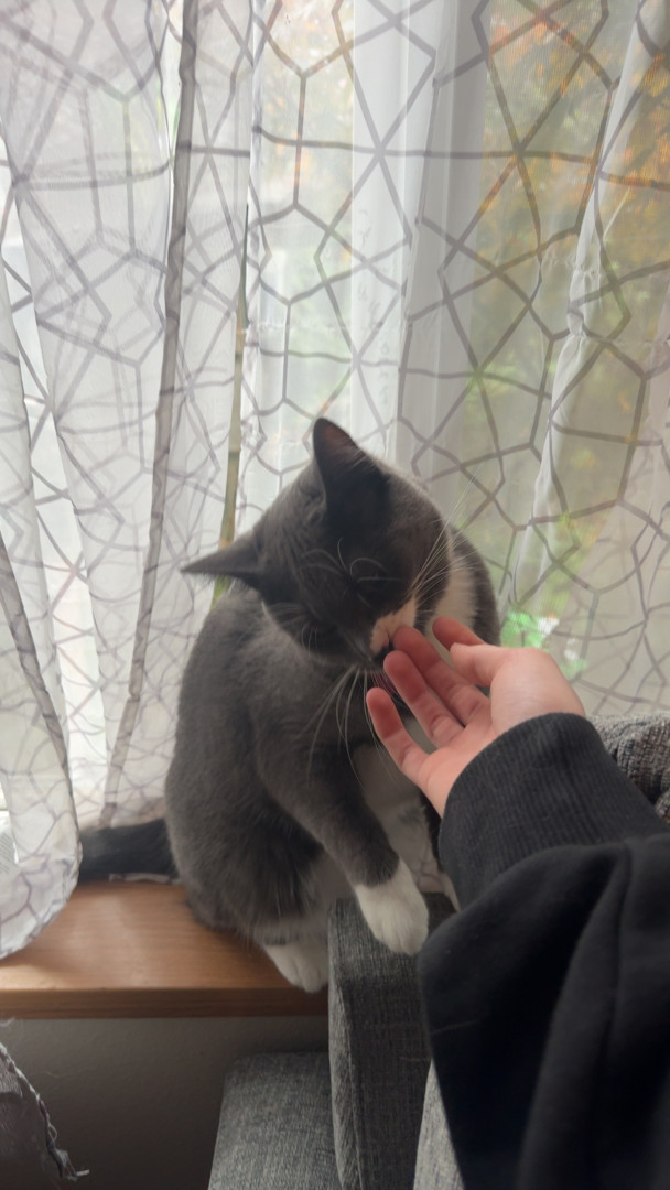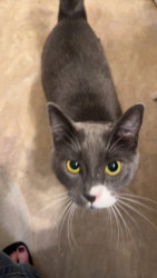 She’s a year old Russian Blue mix with the biggest heart, she loves her cuddles, but will be your best friend if you give her treats!