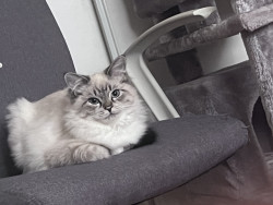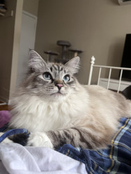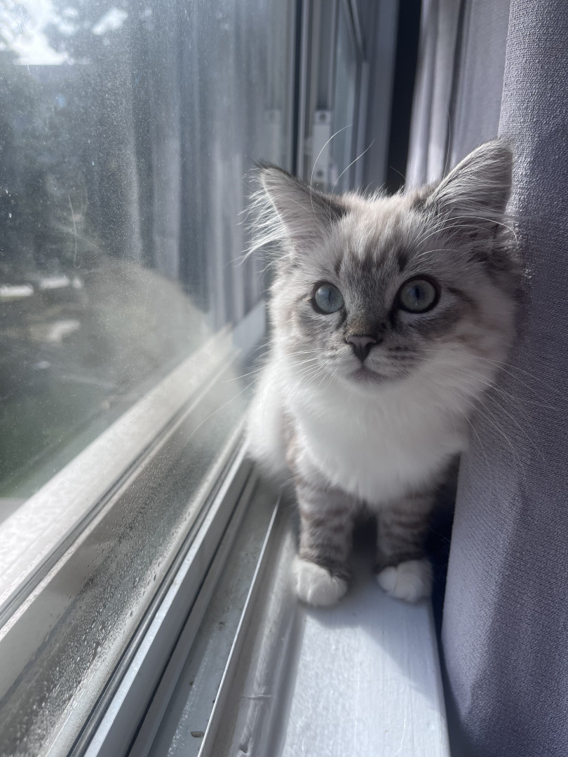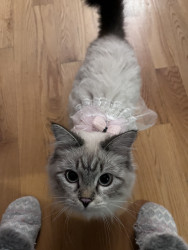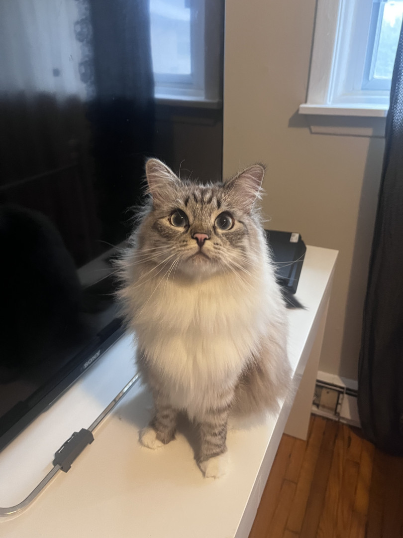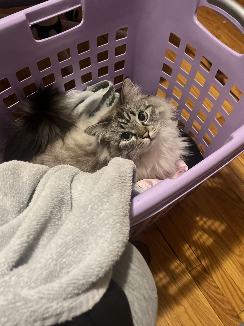 Pearl is intelligent, curious and loving. Great with kids. Loves playing fetch with mom and opening moms clothing drawers when she’s away.