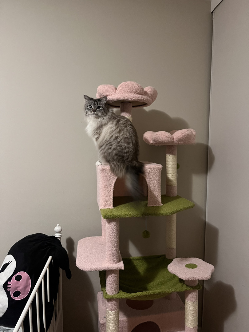 Pearl loves her spring toy - can play with it hours on end. She’s obsessed with freeze dried chicken niblets!