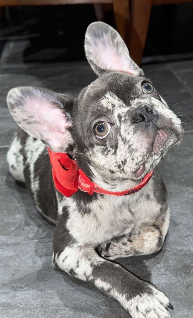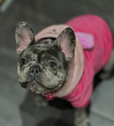 Pebbles has the cutest purr/snort for a French bully! She is super friendly and loves suckling on her toys during nap time. Pebbles is obediate ,caring, and loves her franchise circle.