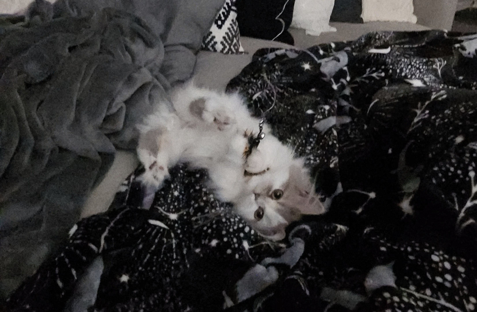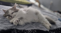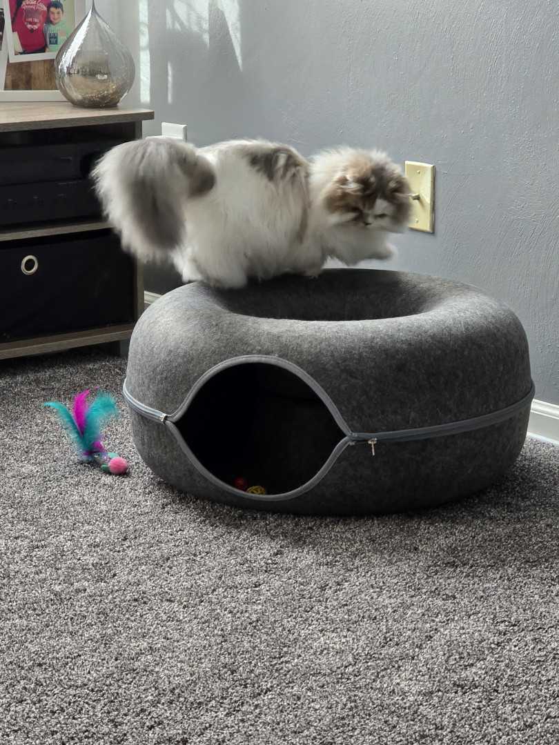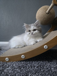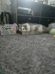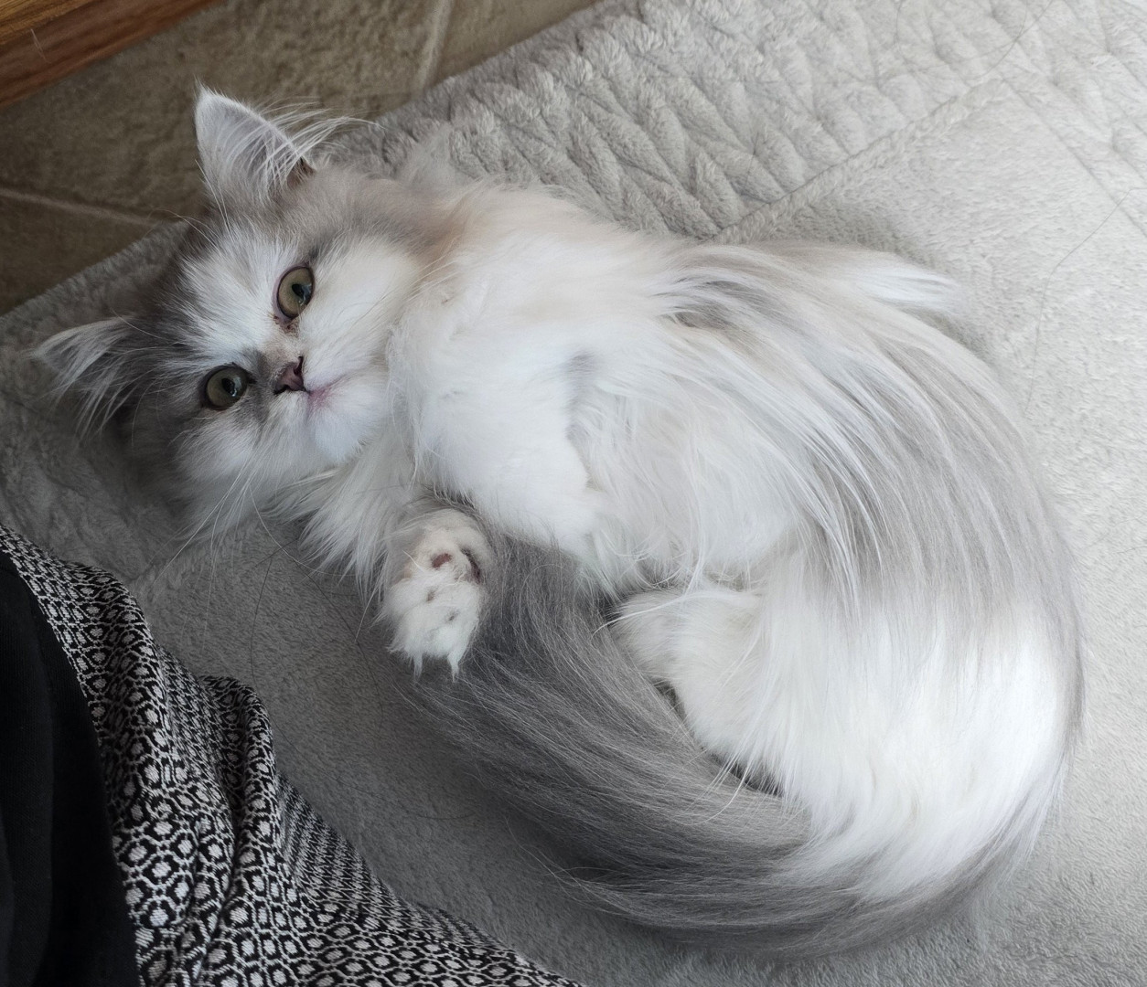 Pebbles is an 8 month old Minuet kitten who inherited her short legs from her Munchkin dad. She is playful, curious, and loves people.
