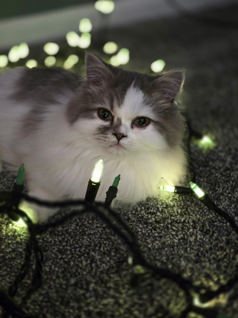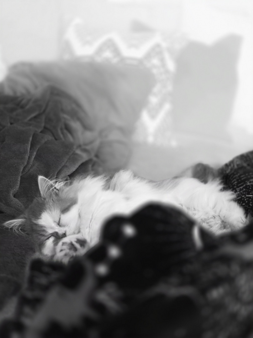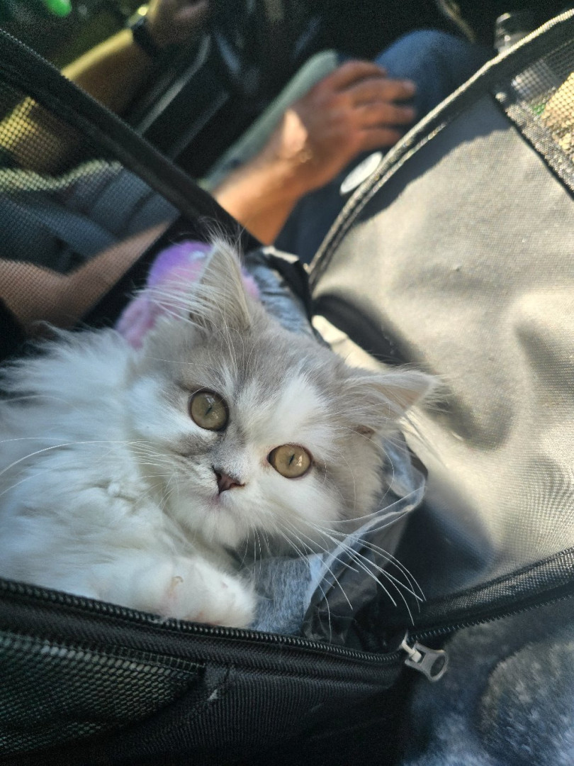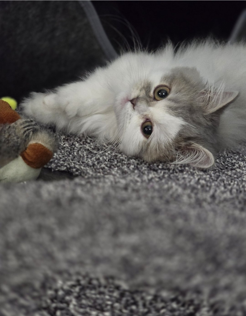 Pebbles should be America's favorite kitty because she is tiny but mighty. She is very vocal, always chatting away. She follows her humans everywhere they go. She loves to play and is curious about everything. She's all fluff at a whole 5 lbs.