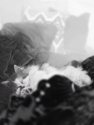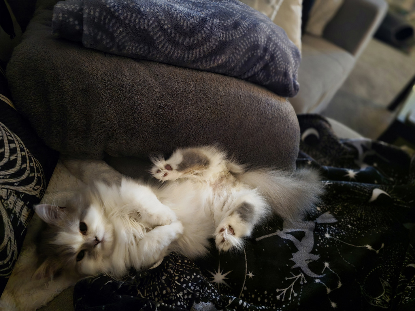 She conveniently lays close to you but just far enough to be out of reach for pets.
