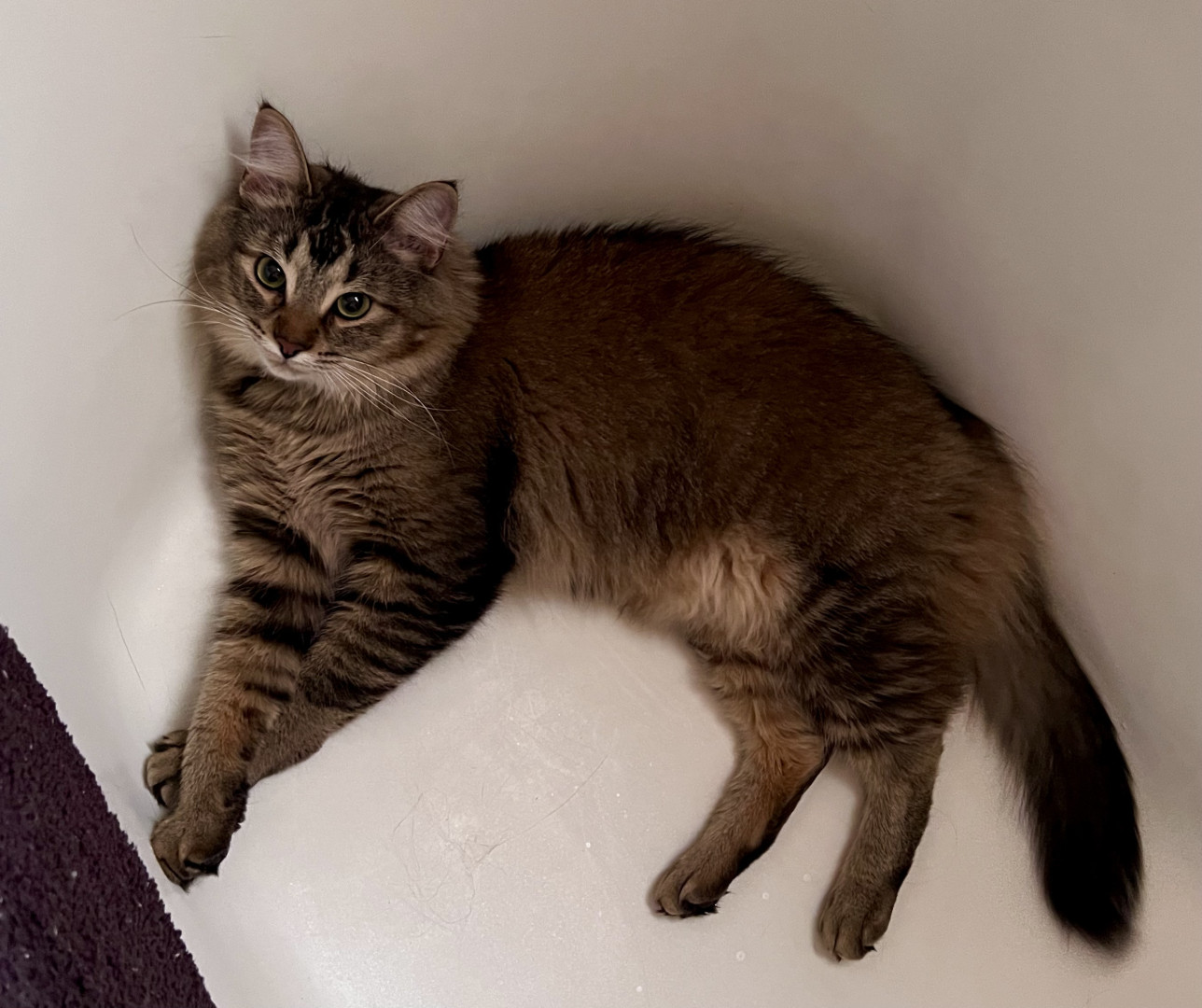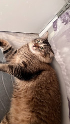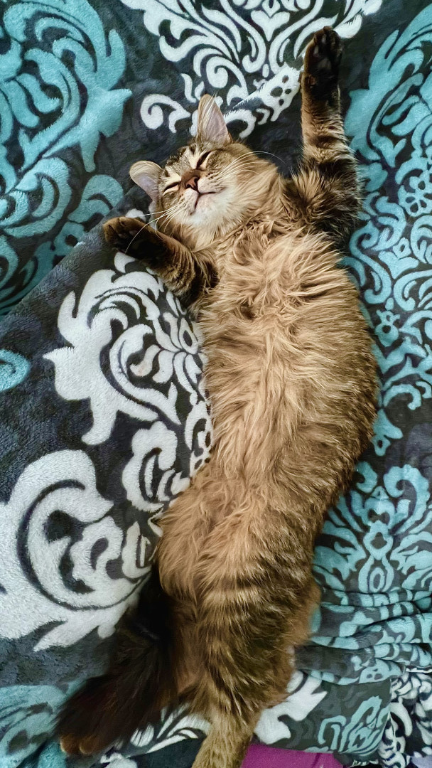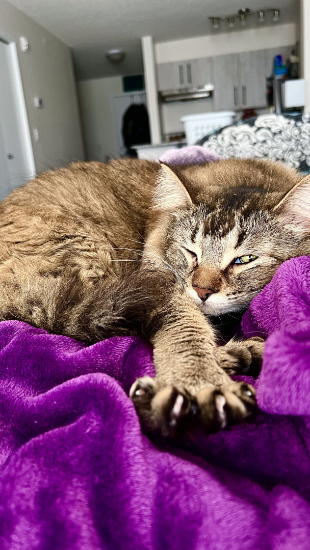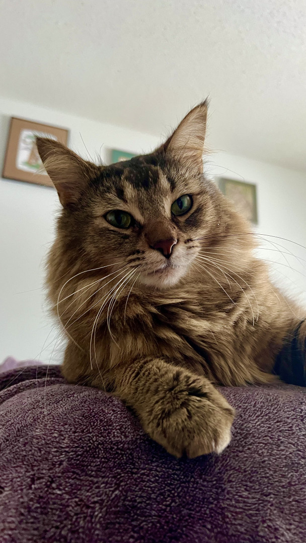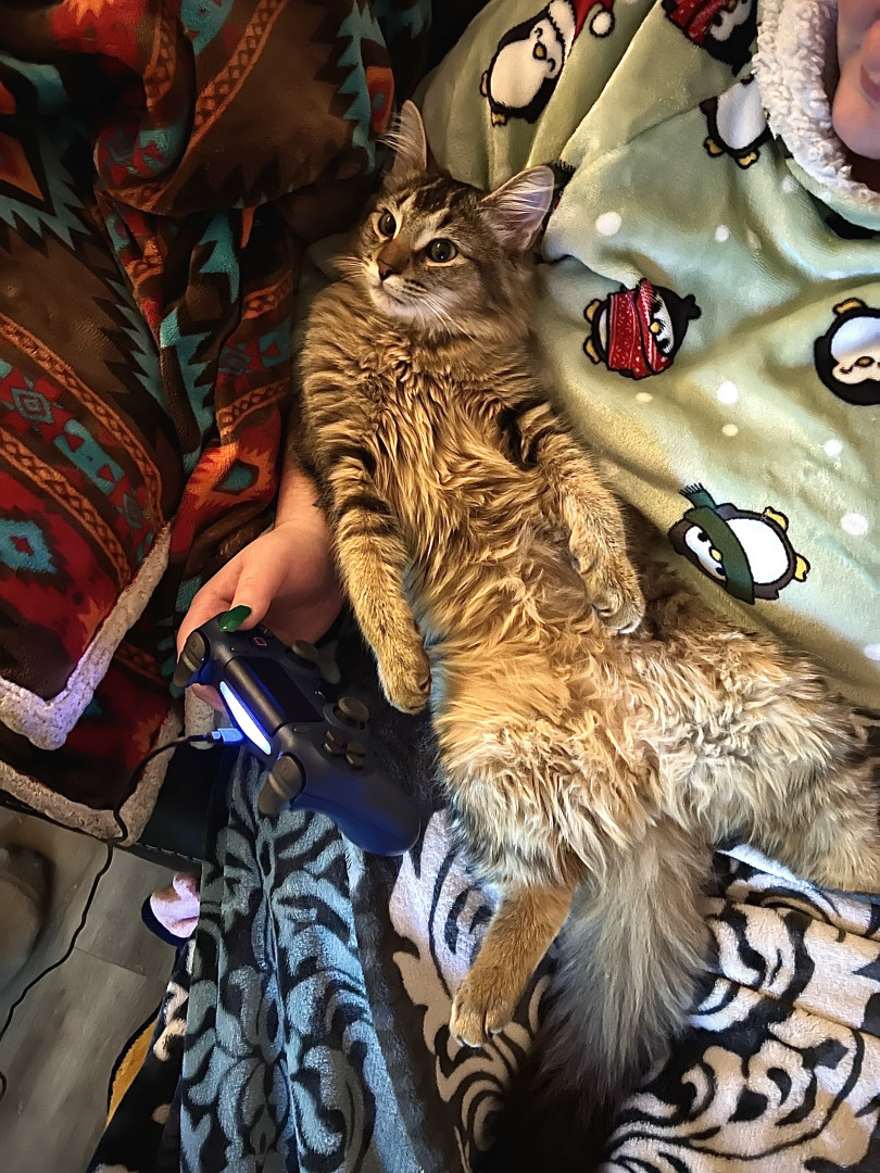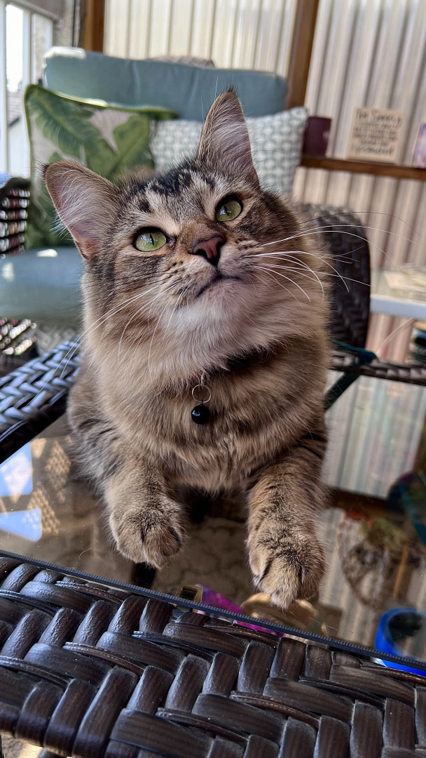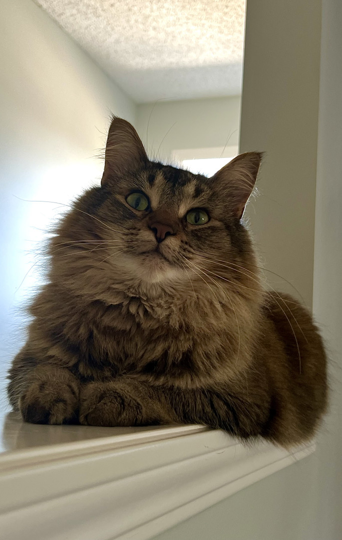 He should be America’s Favorite Pet because he spreads joy wherever he goes. Whether he’s causing silly chaos, turning everyday objects into adventures, or giving his big-eyed ‘you can’t be mad at me’ look, he makes everyone smile. His mix of goofiness, sweetness, and pure charm wins hearts instantly. He’s the kind of cat who makes every day brighter.