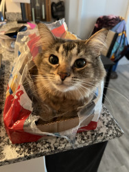 Learn MoreHis favorite treats are Delectables tube treats and Temptations. He comes running the second he hears them. When it comes to toys, he’s convinced that anything not meant to be a toy is the best: bags, boxes, and paper towel rolls are his absolute favorites. He also loves classic kitty toys like balls with bells, tiny mice toys, and especially his stick with the dangling string. Every day is an adventure with this playful, treat-loving little guy!