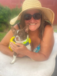 Her unique quality she has a few I would say the best one is when she is trying to say I ❤️ Love U at times she tries to say it. I never owned a Chihuahua this is the first one I have. She is very unique also 1 of my veterinarian said what ever u r doing keep it up she does not act like a normal Chihuahua. When she was smart she didn't mine dog clothes. She older now she doesn't like it has much.