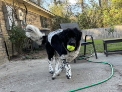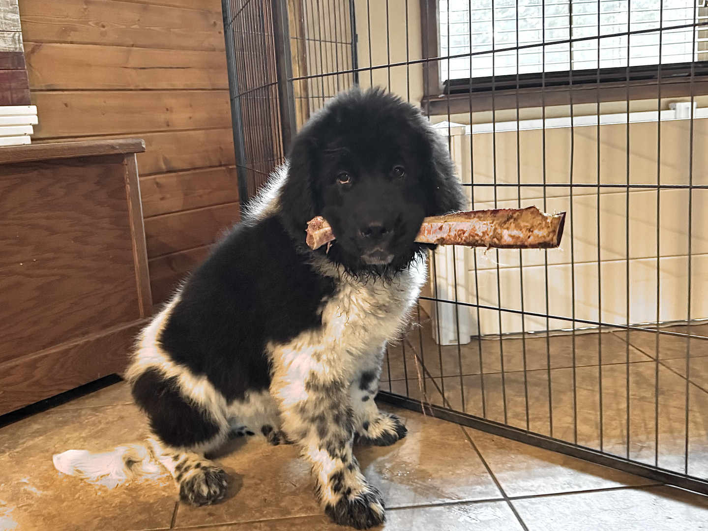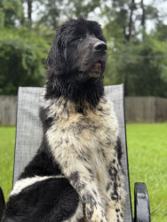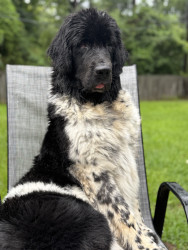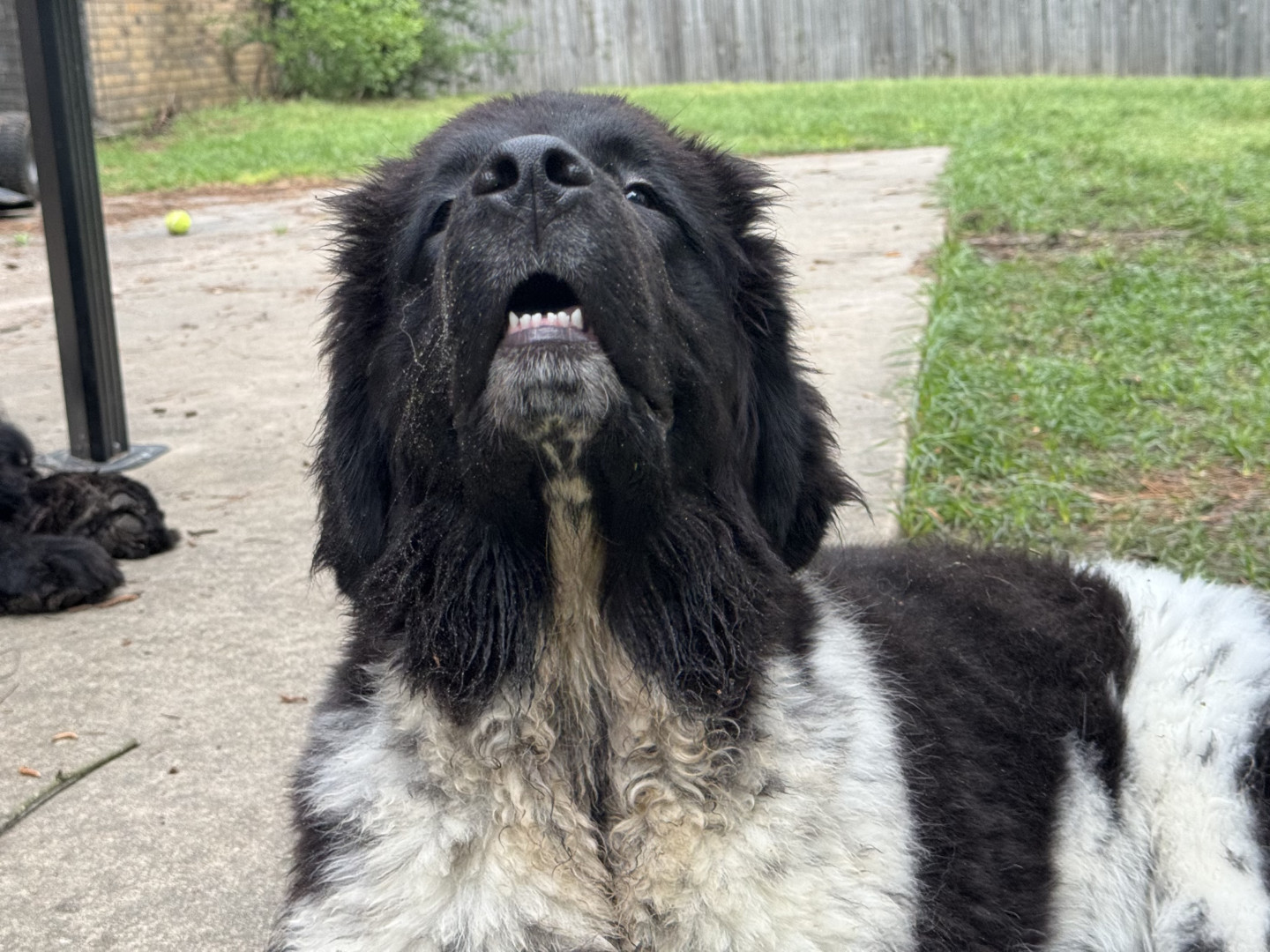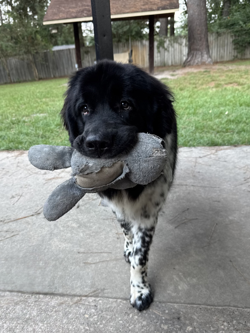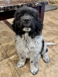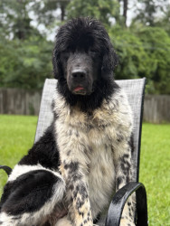 My youngest of three AKC Newfoundlands. Penny is a very sweet, energetic and goofy Newfie! She has Russian and Hungarian bloodlines.