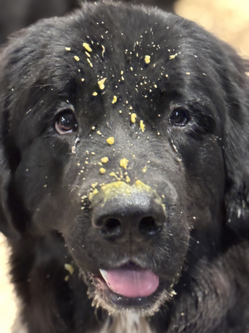 Penny is just a beautiful, sweet girl and is fun to watch her being a goofy Newfie. She’s always running around zooming my other dogs. She has such a bright, happy love of life.
