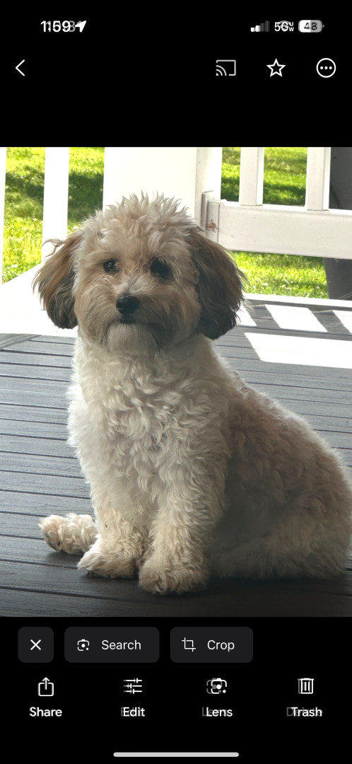 She is the sweetest most lovable dog. Loves to be cuddled. She is the protector of the house, can’t let any squirrels or deer get too close.