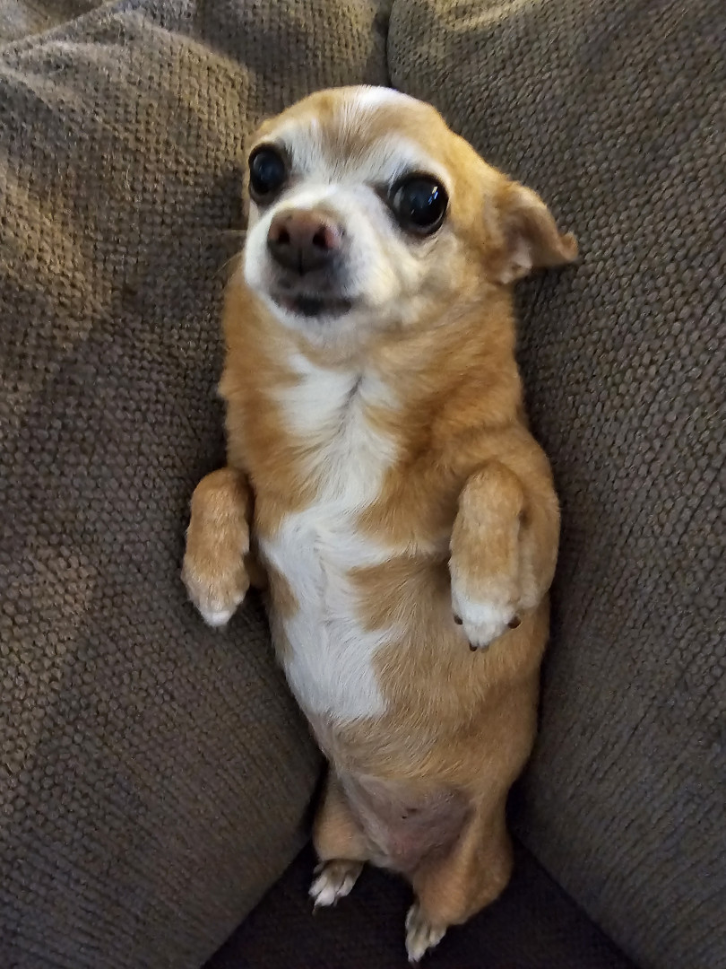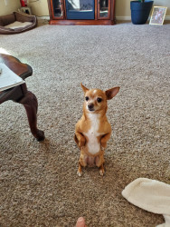 Well, look at her, she's beautiful and she's a pure bread Chihuahua.🤣 and she could set up to.