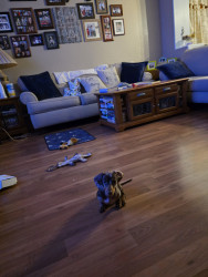 Penny is very smart as she is always looking for ways to get out of her play area. She loves her carrots and snuggle time.