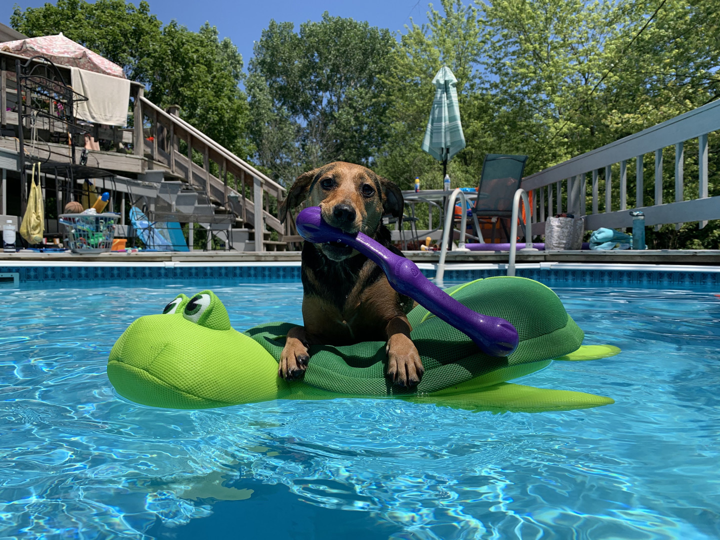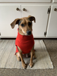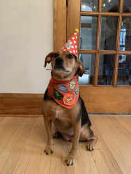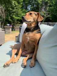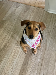 Penny likes stuffed squeaky toys. We stick to the joyhound rip roaring tuff toys as they last longer around here. Her favorite thing to do is swim at her grandma and grandpas pool in the summer. Penny is not picky with food. She loves apples, dried bananas, blueberries, cucumbers, freeze dried kangaroo & carrots.