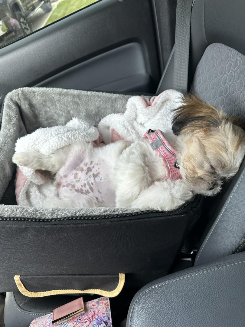 She is the sweetest baby who loves everyone and has such a wonderful personality. She loves riding in her car seat and going to work with me