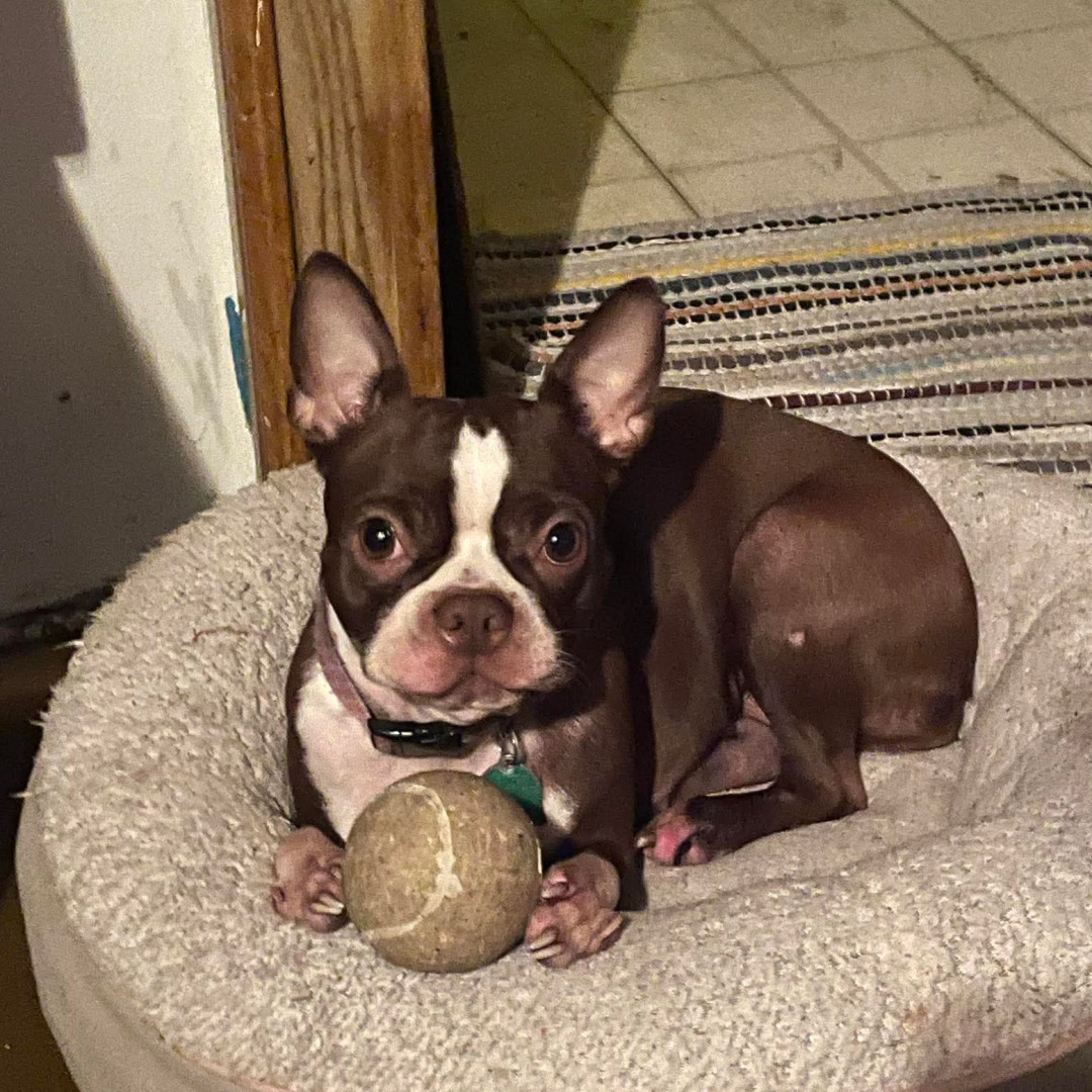 My baby is a brown/seal Boston terrier. She has a lot of spunk. She is always playing she had her own YouTube channel.