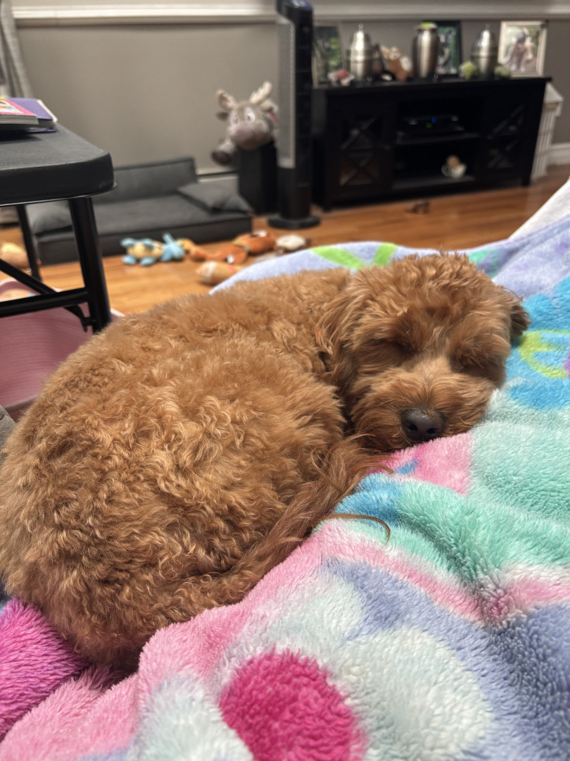 Penny is a 1 year old micro golden doodle. She has a lot of energy, loves to run around in our backyard. Very loveable.