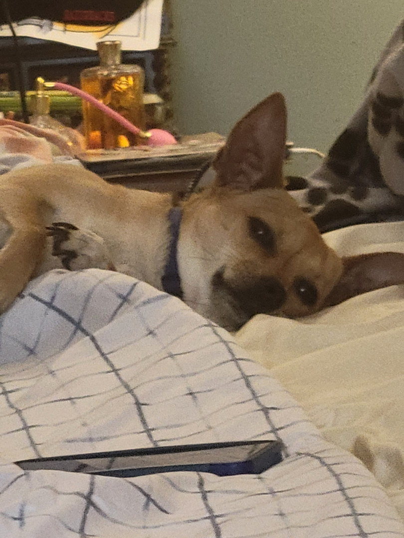 Penny is gentle, loving always up to snuggling. Never meets a stranger. Loves to take naps.