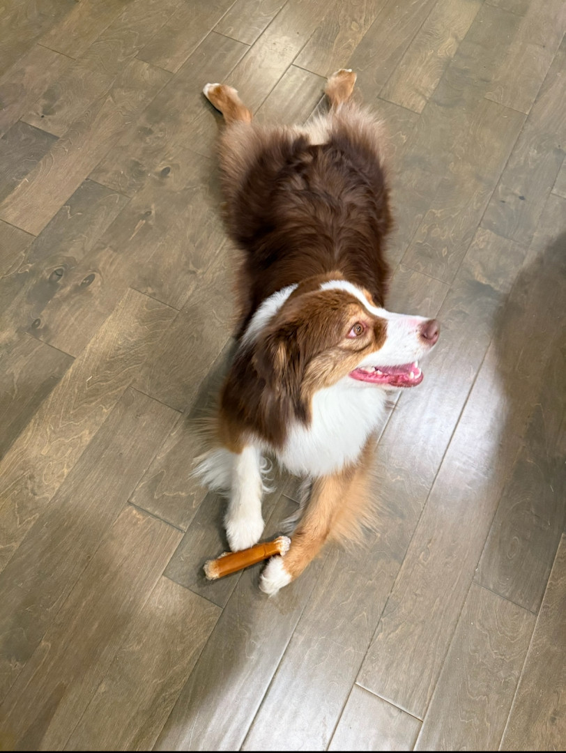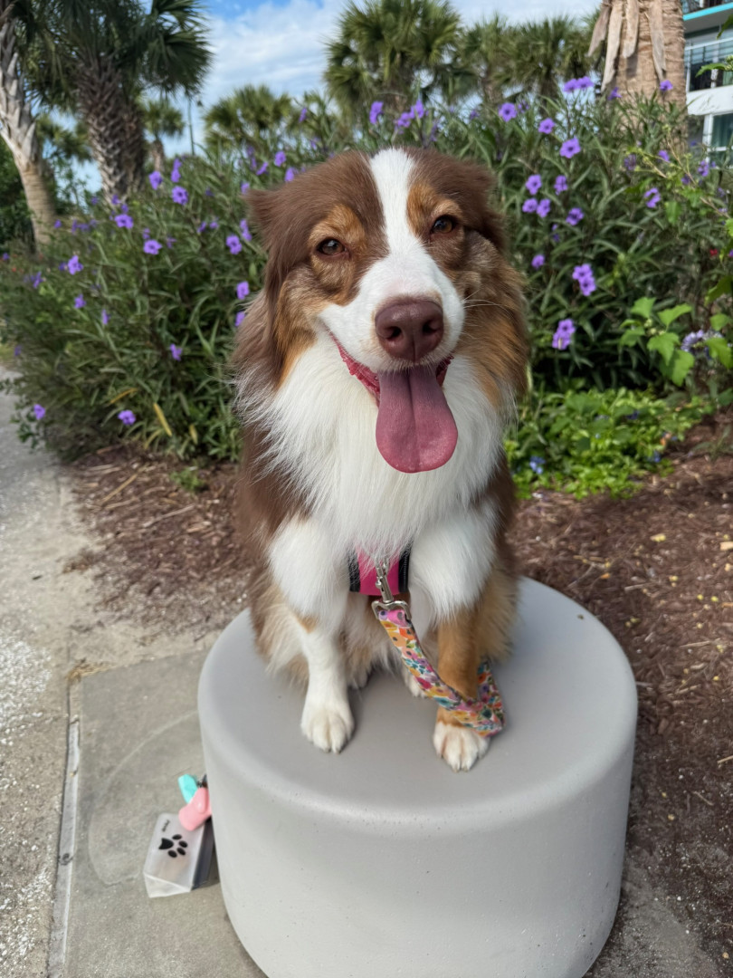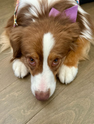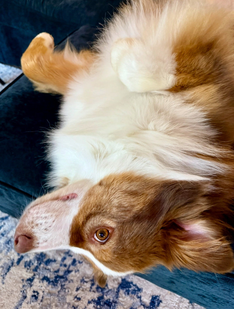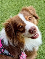 Penny is a heart-stealing wiggle-butt Aussie, fueled by kisses, with warm, soulful hazel eyes and a sweet smile that will melt your heart.
