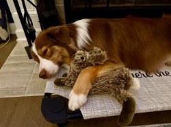 Learn MorePenny’s all-time favorite toy is Dirt Bunny. It began as a pink bunny she proudly dragged through the dirt and was feared lost forever—until two weeks later, when Penny triumphantly carried it back inside like a treasure. Though that bunny retired, its legacy lives on in a brown replacement, still lovingly called Dirt Bunny, that never leaves her side. More than a toy, it’s her comfort and constant companion. Penny proves love doesn’t have to be perfect to be powerful—just loyal.