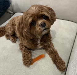 Learn MorePenny loves her stuffed birthday cake and her chew bones. She picks which color she wants and chews them next to me on the couch. Her go-to treats are fresh pieces of turkey (when the deli drawer opens, she comes running down) and her lean treats - chewy meat treats that she gets for volunteering and when she needs to take medicine.