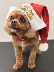 Penny is a human in a dog costume. She’s a therapy dog who acts and looks like a puppy but is in actuality 11 years old! She’s love, truly