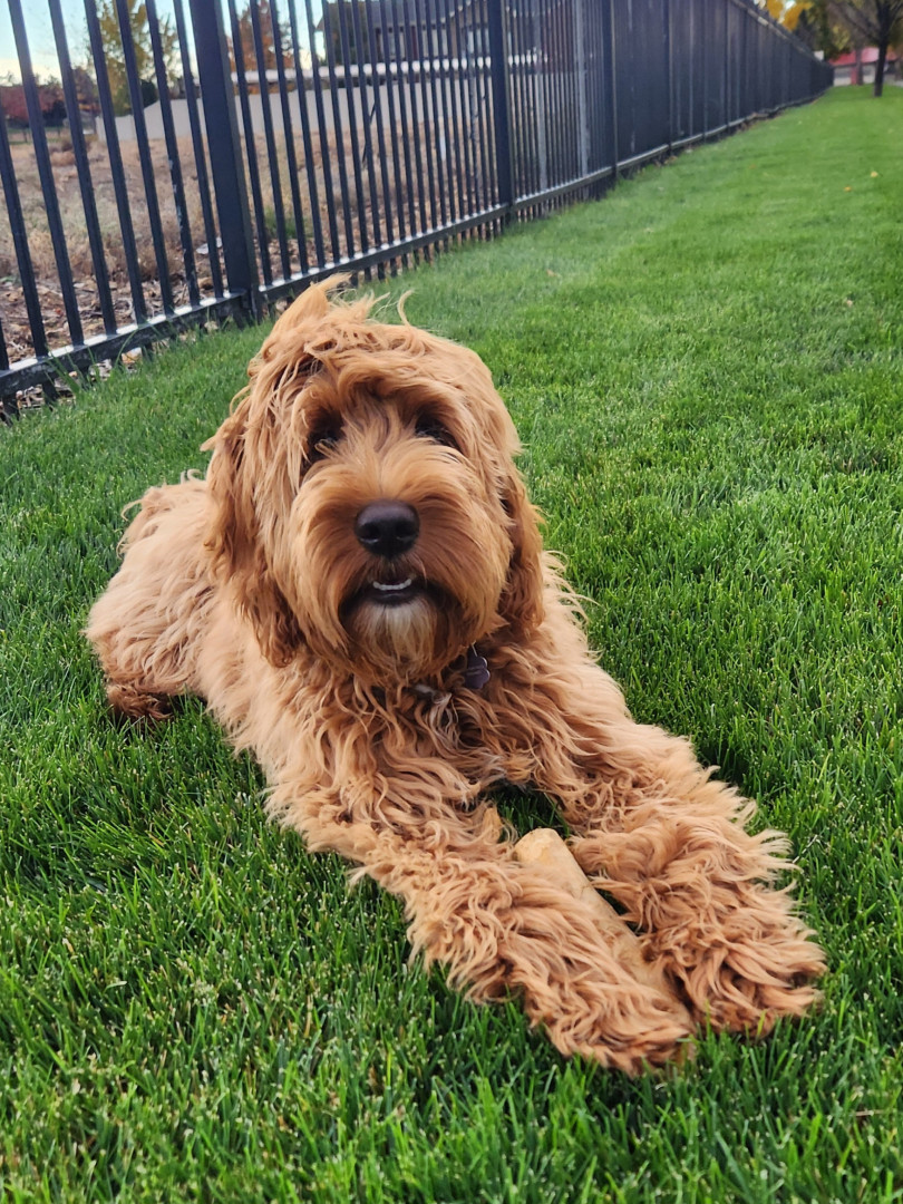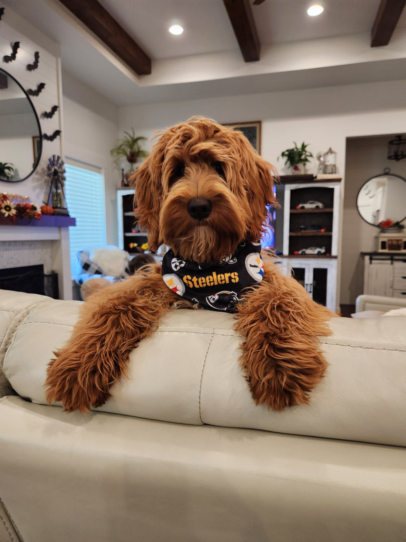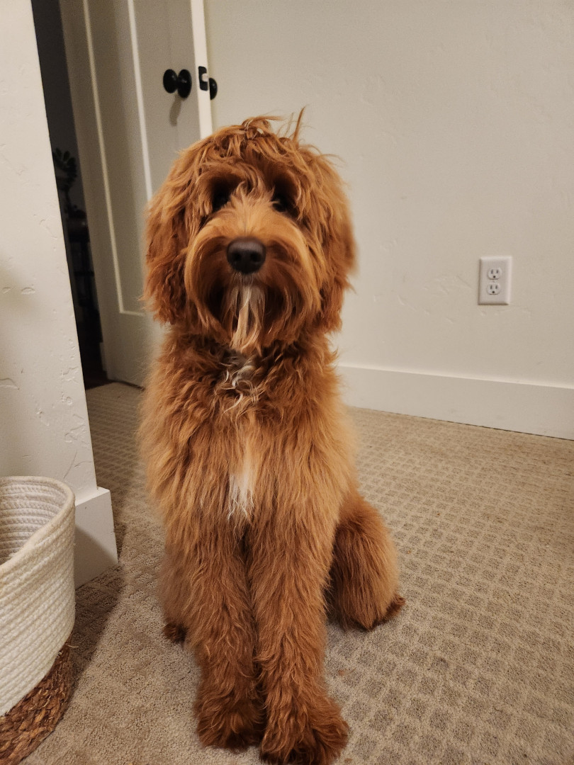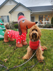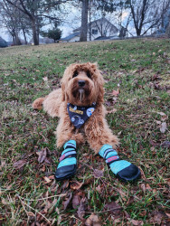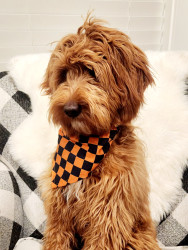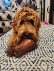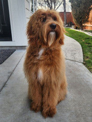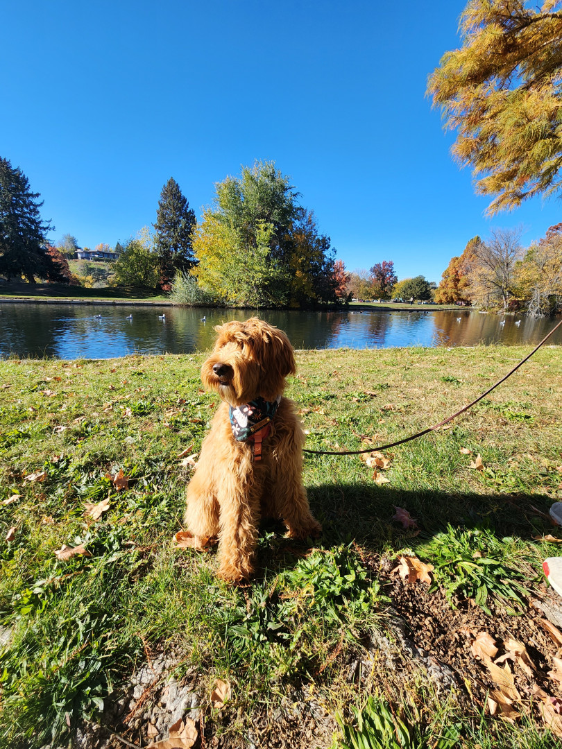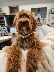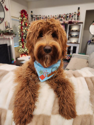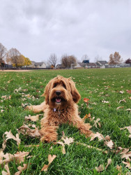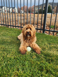 Penny is 10 m. old medium goldendoodle. She is a people pleaser who loves to learn & try new things. She loves fetch & sniff walks.
